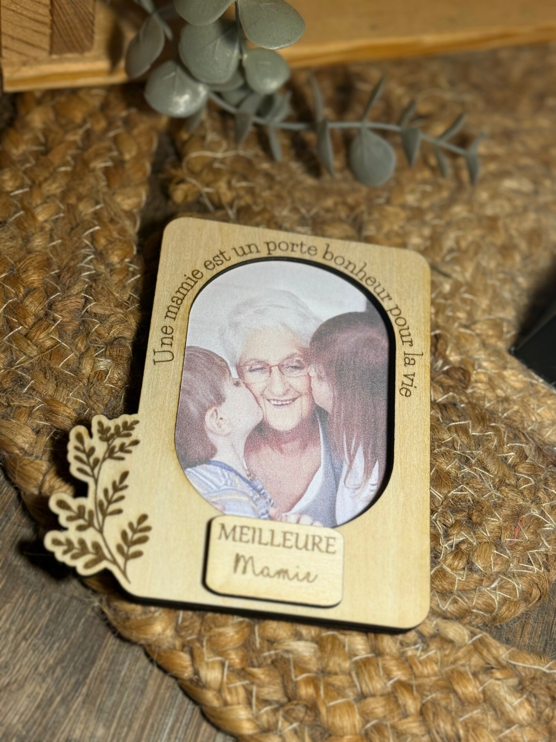 Magnet photo en bois personnalisé, idéal pour la Fête des Mamies 🌸